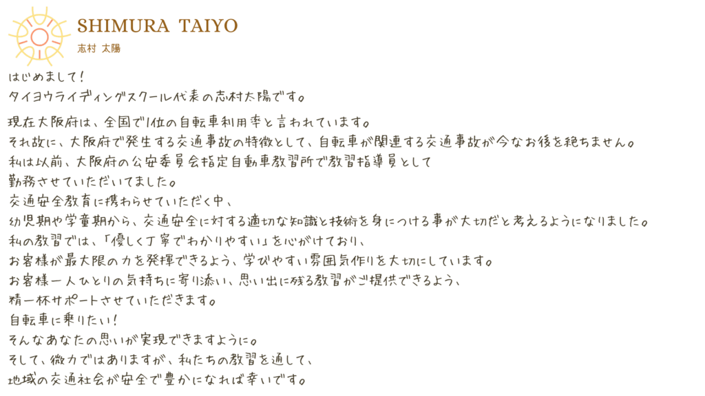 ※自転車を所有されていないお客様などは、弊社所有の教習車をご利用をください。